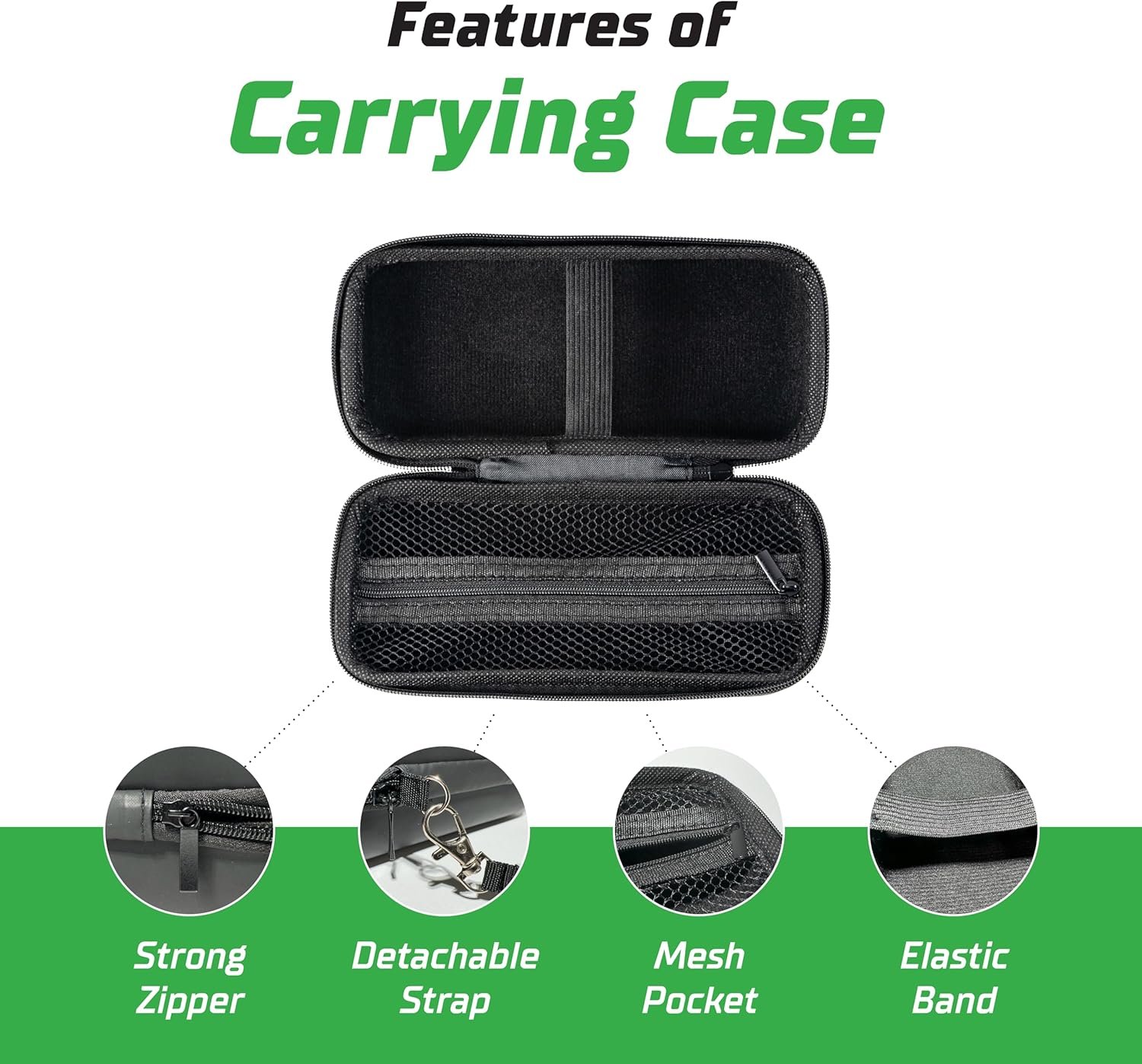 MESH POCKET FOR NEEDLES: The Airmoto Carrying Case has a mesh compartment pocket to store your tire inflator connectors, power kit and other accessories.
