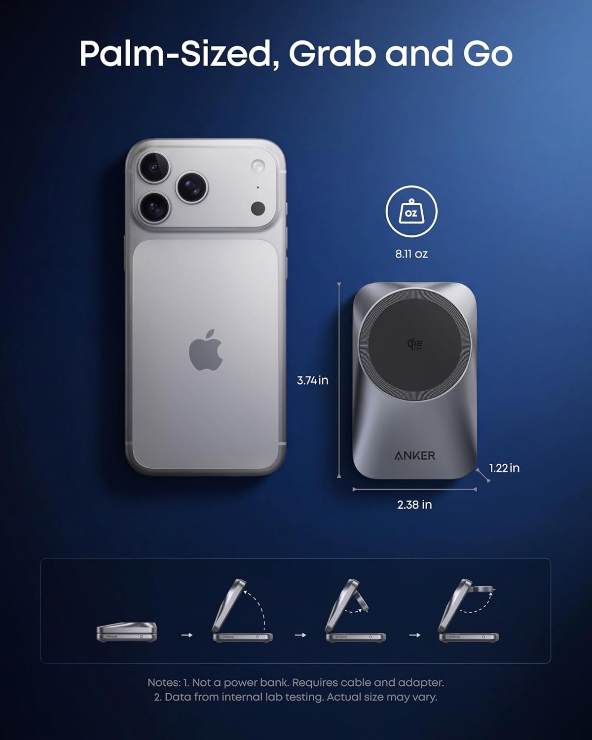 Compact and Travel-Ready: Roughly the size of your palm (3.74 × 2.38 × 1.22 in) and weighs the same as an iPhone 17 Pro Max (8.11 oz). Folds completely flat for easy packing—ideal for travel, commuting, or working on the go.
