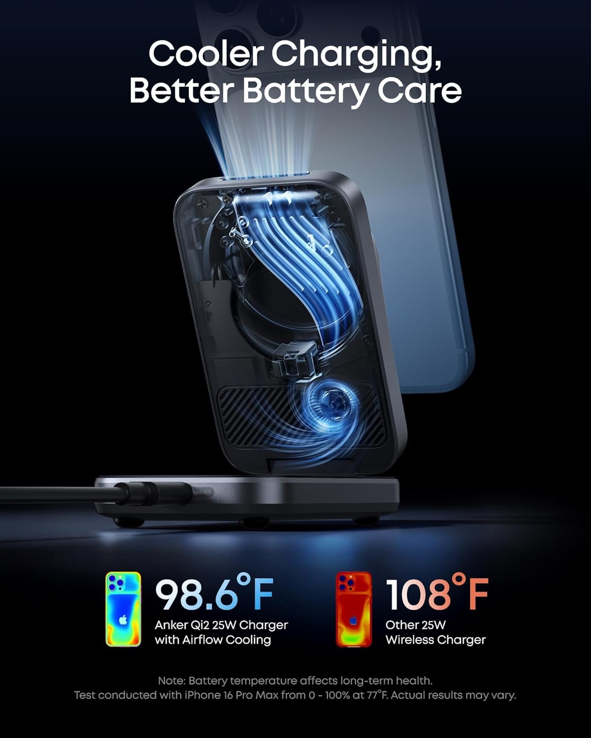Whisper-Quiet Active Cooling: The advanced airflow cooling system operates at just 19 dB, keeping your phone below 98.6°F during charging. Delivers up to 25W of power while helping protect your battery’s health.