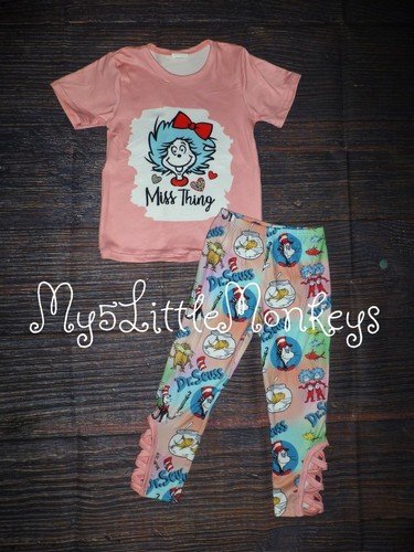 Looking for the best price on NEW Dr Seuss Miss Thing Bleached Shirt & Leggings Girls Boutique Outfit Set ?