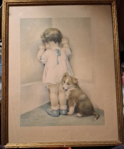 Looking for the best price on Vintage Bessie Pease Gutmann Lithograph “In Disgrace” Framed 21.5 x 27.5 Rare!!?