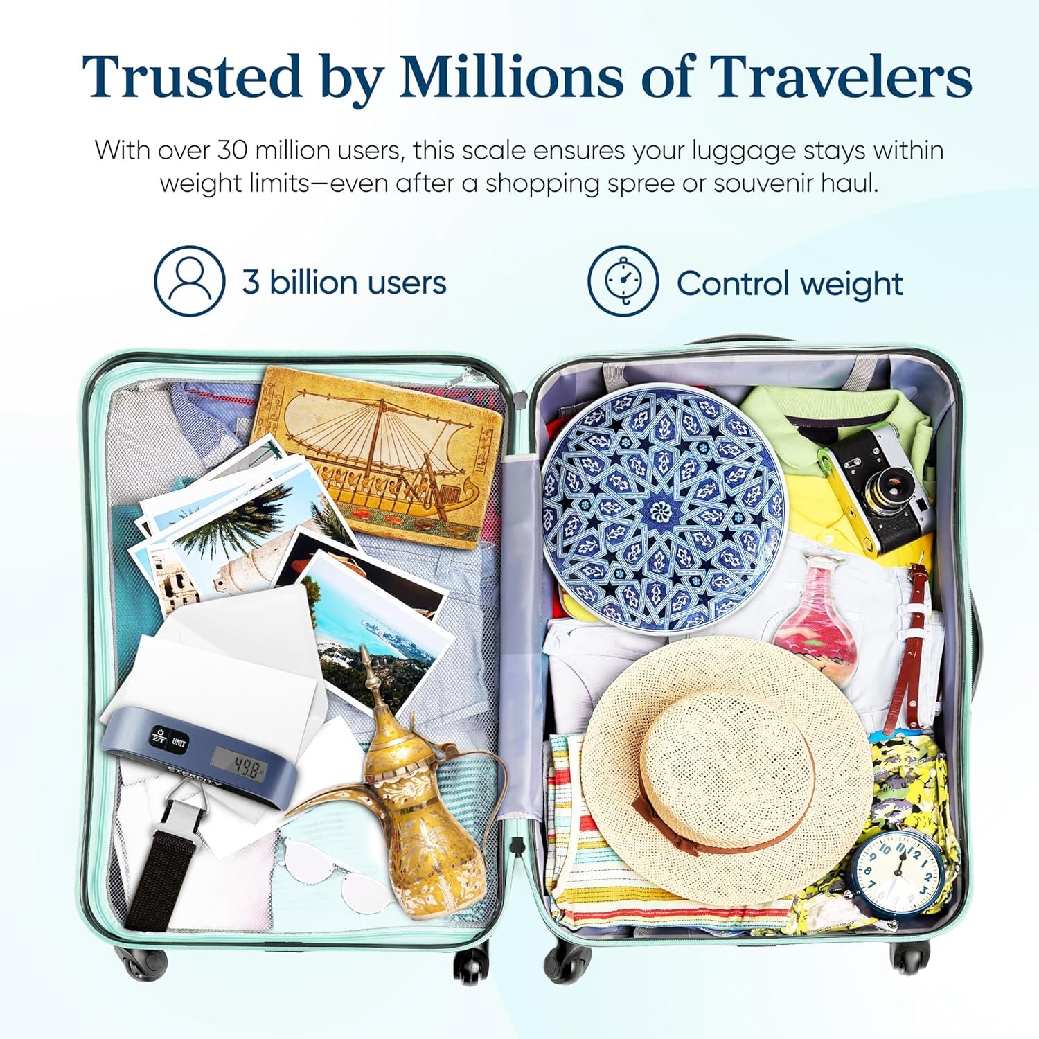 𝑷𝒆𝒓𝒇𝒆𝒄𝒕 𝒇𝒐𝒓 𝑹𝒐𝒖𝒏𝒅-𝑻𝒓𝒊𝒑 𝑻𝒓𝒂𝒗𝒆𝒍𝒆𝒓𝒔: Trusted by 30,000,000+ of users for post-trip weighing, ensuring your return luggage stays within limits after a shopping spree or collecting souvenirs.