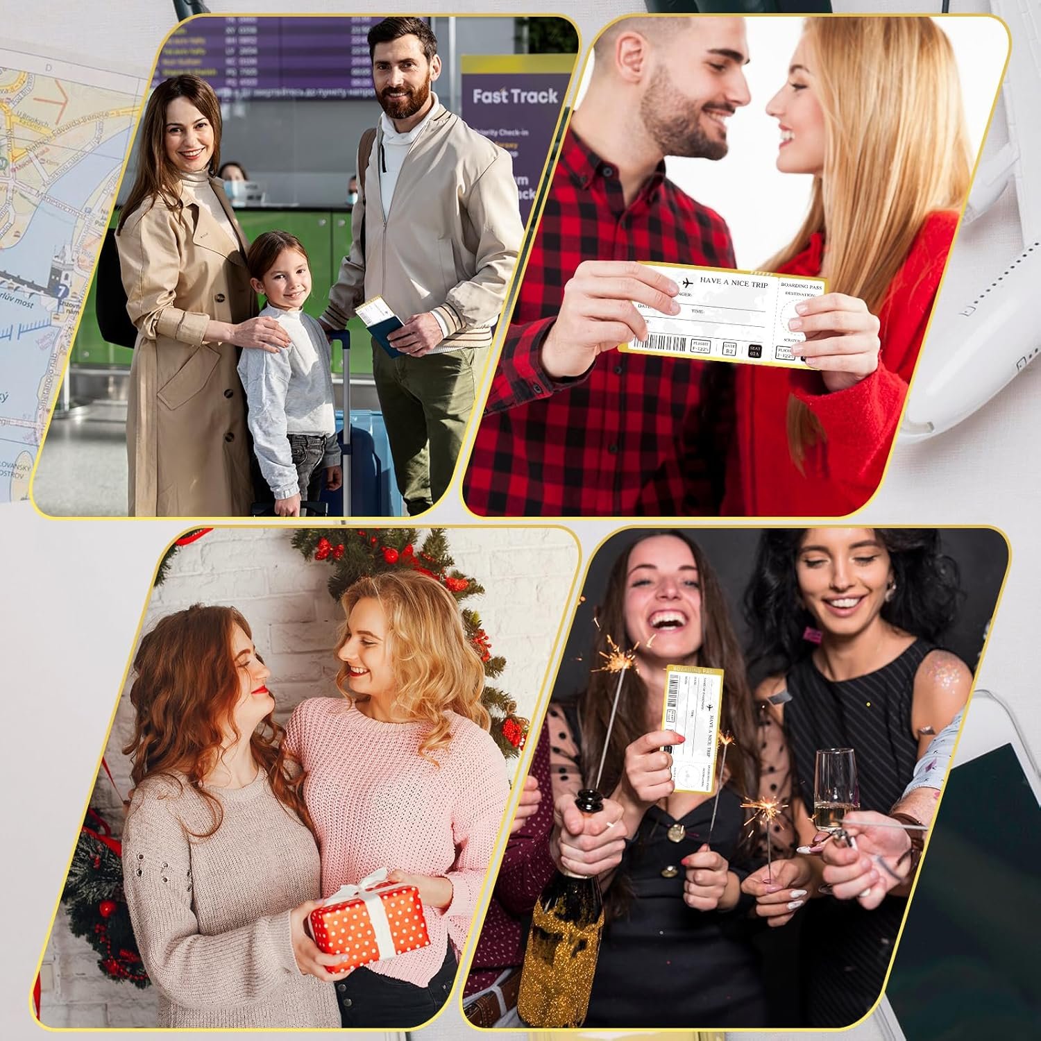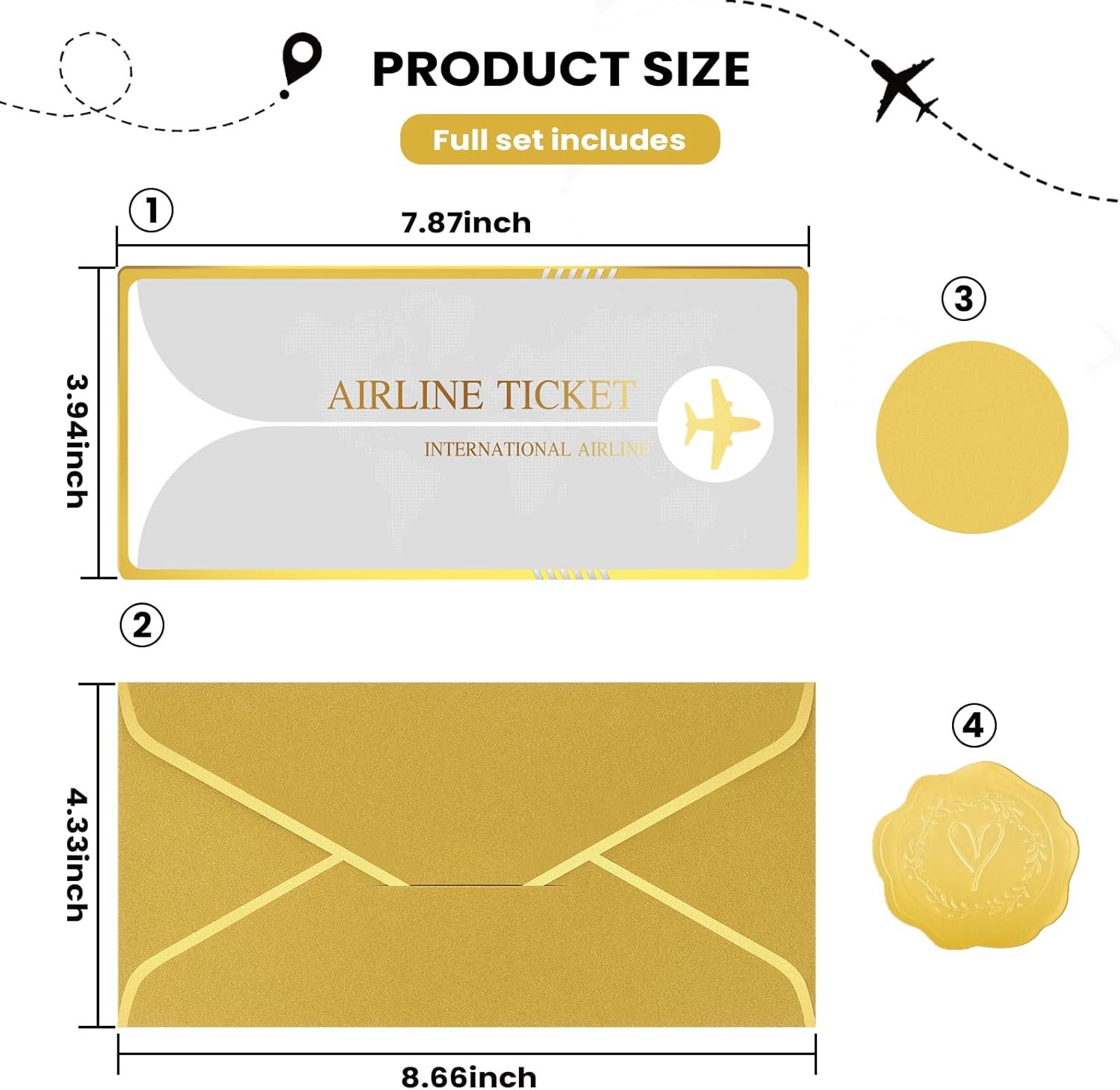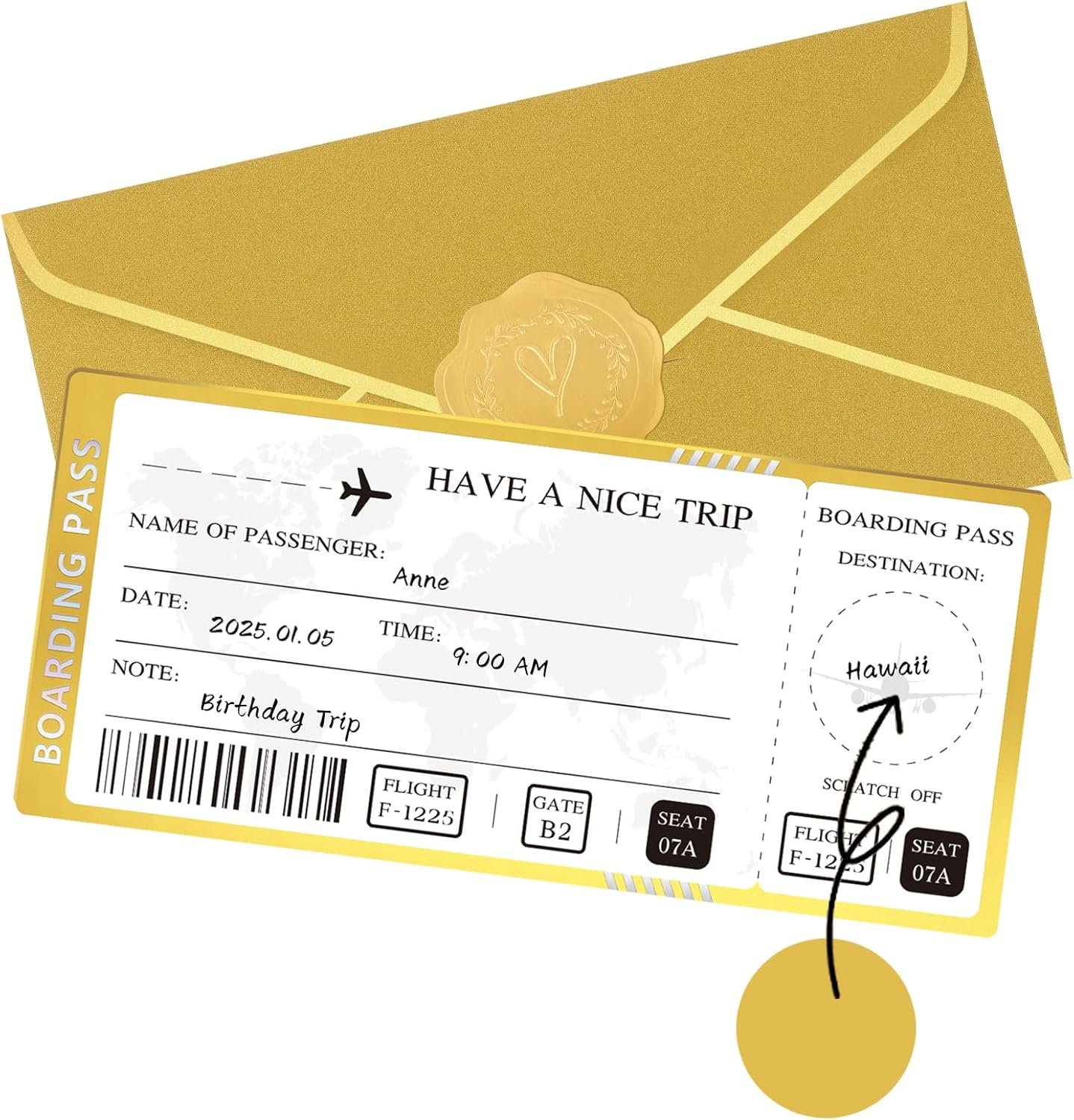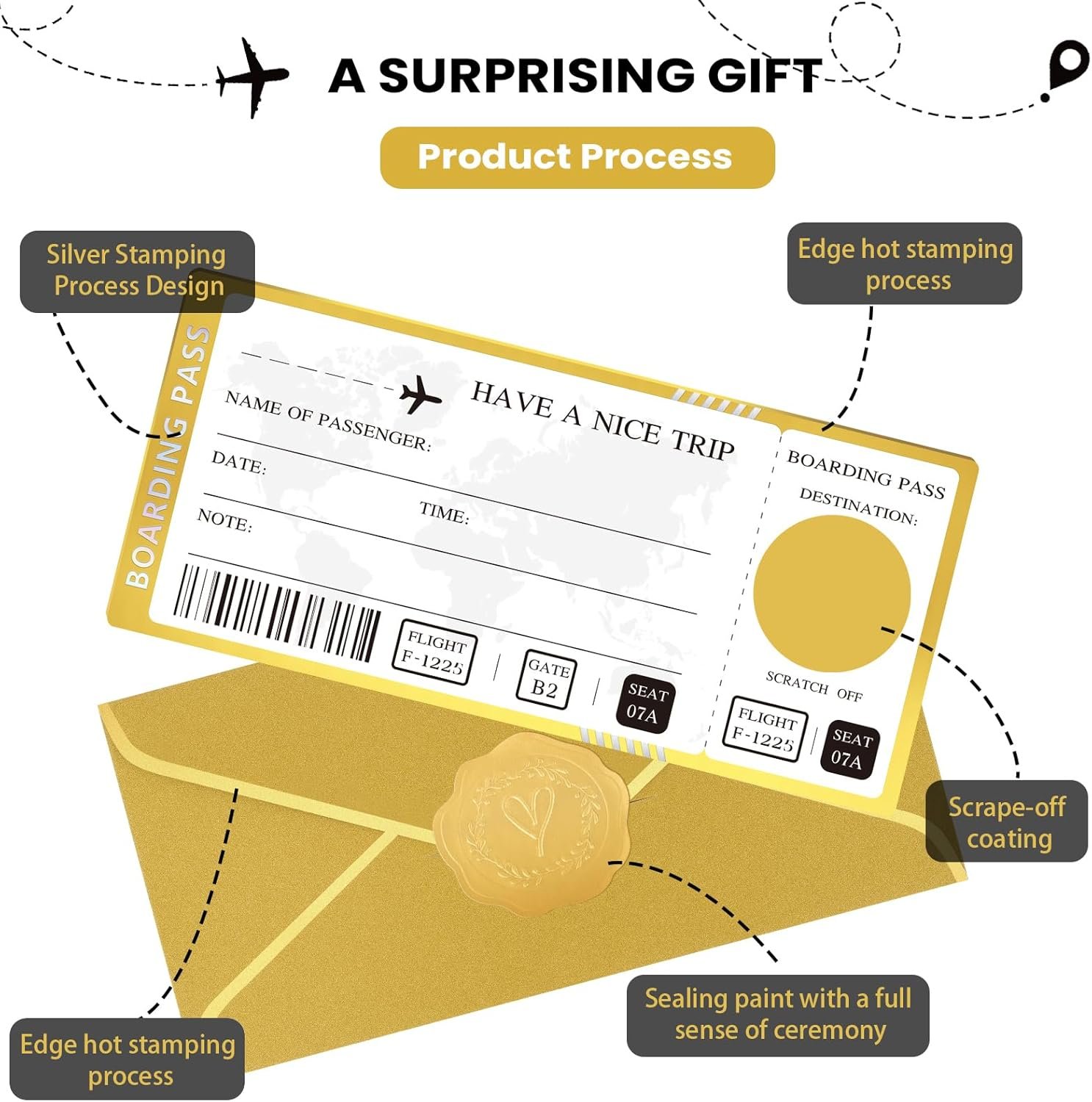 Golden Ticket Scratch Off with Envelopes and Seal, Golden Scratch Off Cards for Air Ticket Gift, Gold Surprise Gifts Tickets for Valentine’s Day Birthday Girlfriends Vacation Couple Dating etc
