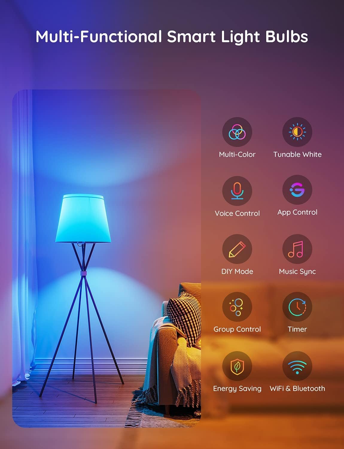 Smart Control: Govee color changing light bulbs make it possible to control your bulbs with simple voice commands. And you’d also feel free to turn your smart light bulbs on/off, adjust brightness, or change the colors, set scenes via Govee Home App.