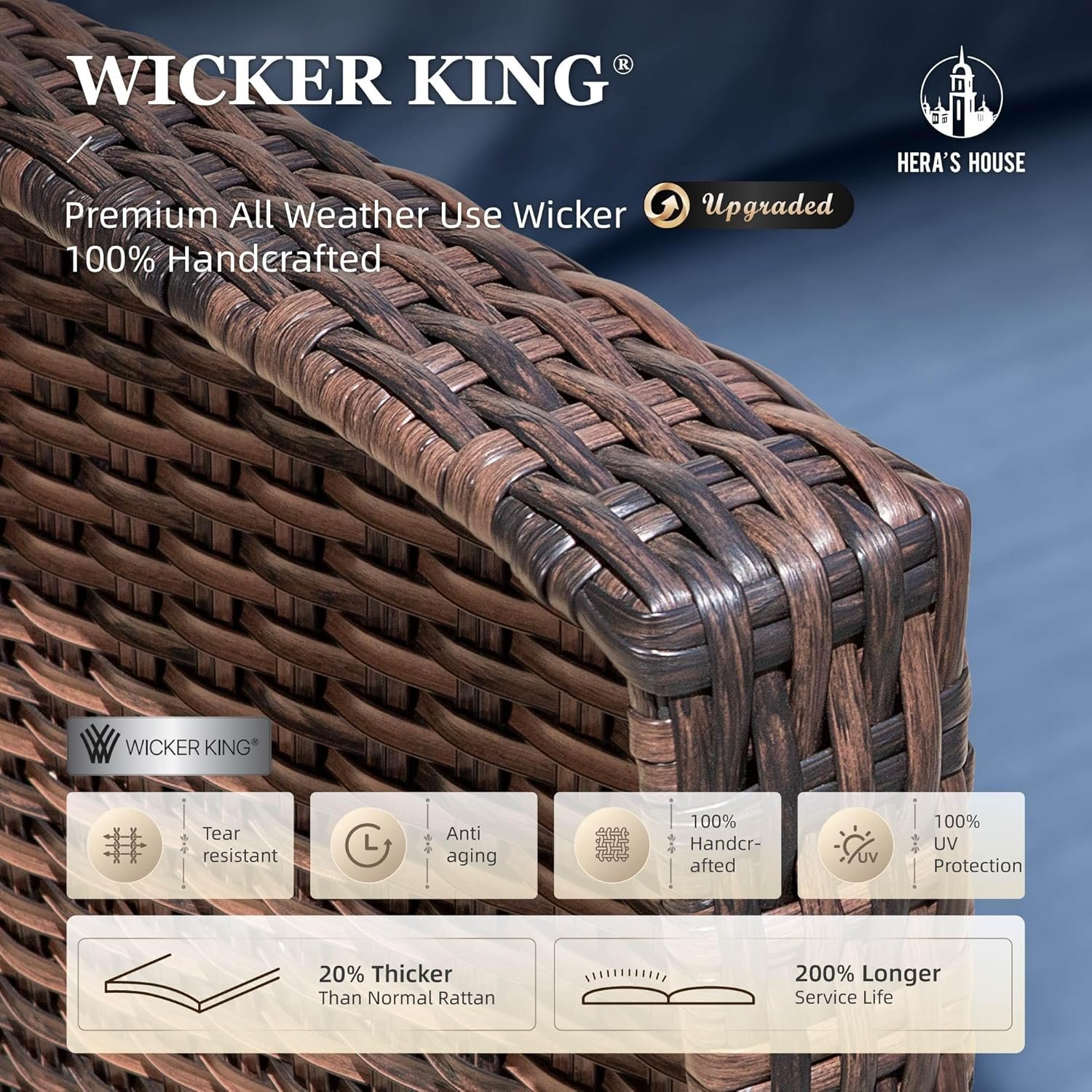 【All-Weather Outdoor Sofa Set】The wicker patio furniture set won’t dry crack, scratch, rust, peeling and aging thanks to WICKER KING Technology and rust-resistant e-coating & powder coating metal frames. Outstanding 350lbs weight capacity on each seat. Ideal for lounging in the deck, backyard, garden or poolside conversations and relaxation