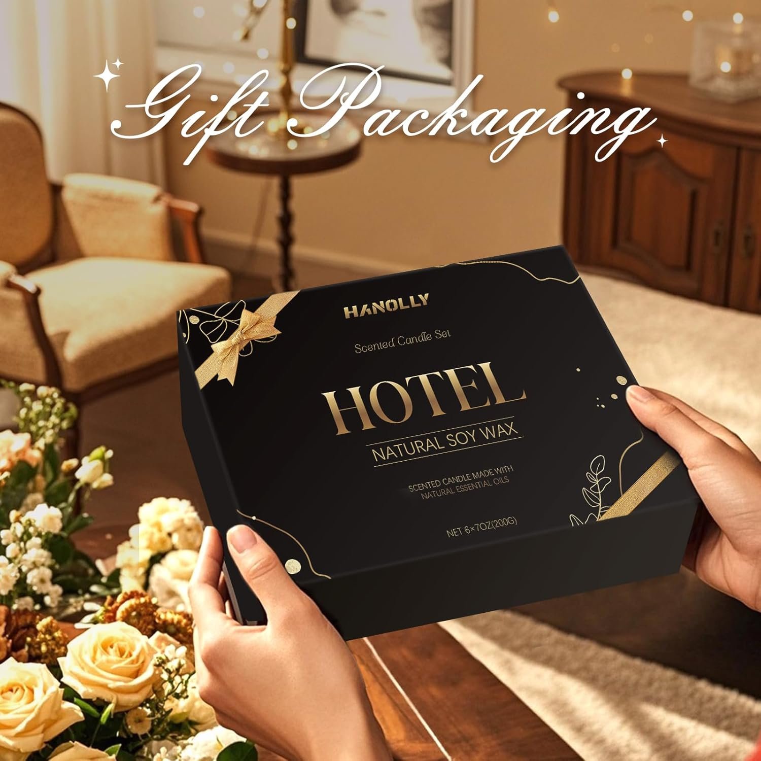 Thoughtful Luxury Gift Box for Any Occasion: Our scented candle gift set is elegantly packaged in a classic black box, making it an ideal gift for birthdays, Father’s Day, Christmas, or housewarmings. Suitable for everyone—from spa lovers to busy professionals—this luxurious gift promotes indulgence and self-care, allowing anyone to enjoy a taste of hotel luxury at home.