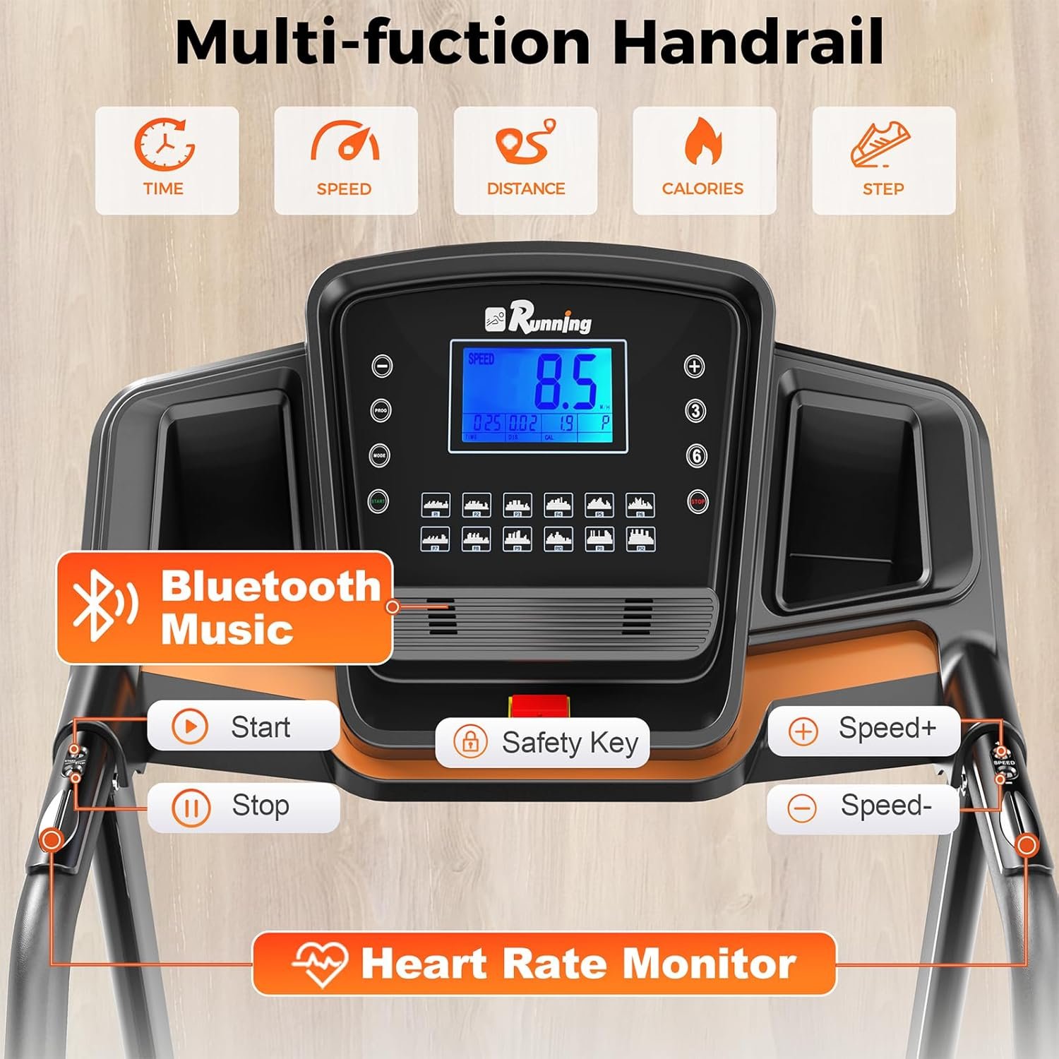 【Powerful 3.5HP Motor & Ultra-Quiet Operation】 Drive your fitness goals with a robust 3.5 HP motor that delivers smooth, powerful performance for speeds from 0-8.5 MPH. Engineered for whisper-quiet operation, so you can work out anytime without disturbing others—perfect for apartments and home use.
