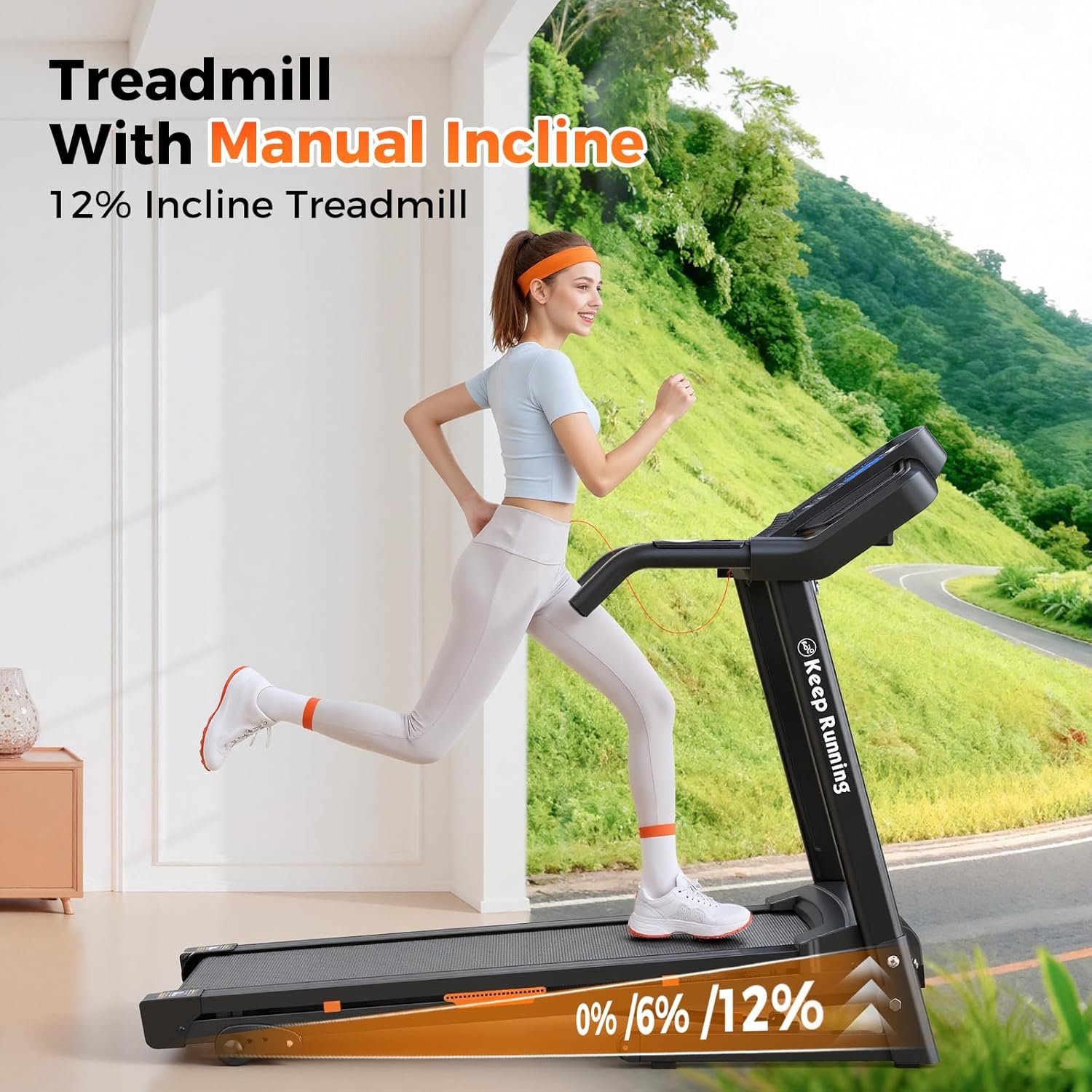 【12% Manual Incline & Max Calorie Burn】 Intensify your training and maximize fat burning! The manual 3-stage incline easily adjusts up to a 12% slope, simulating uphill runs to engage more muscle groups and boost your cardiovascular fitness faster.
