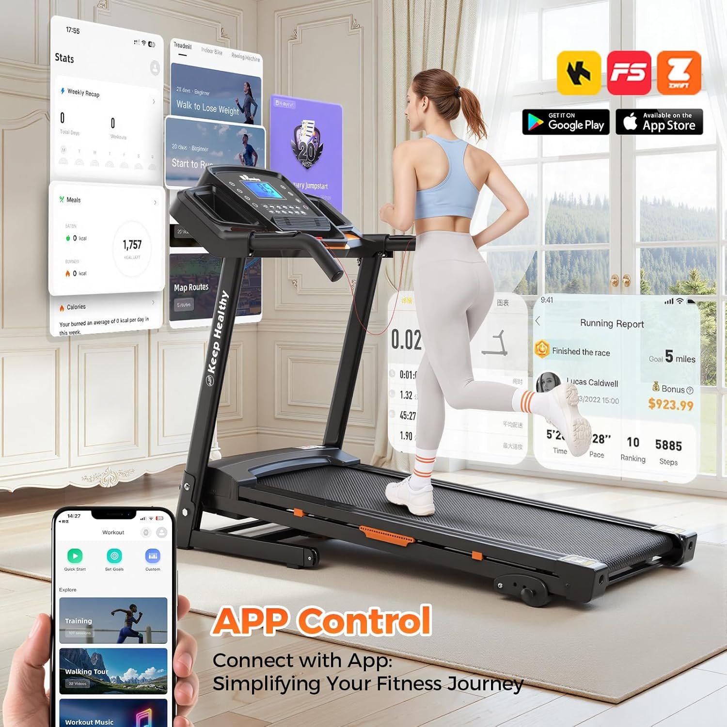 【12 Preset Programs & Bluetooth App Connectivity】 Beat workout boredom with 12 built-in programs for walking, jogging, and running. Connect your device via Bluetooth to fitness apps for guided workouts, and use the integrated speaker to stream motivating music or podcasts.