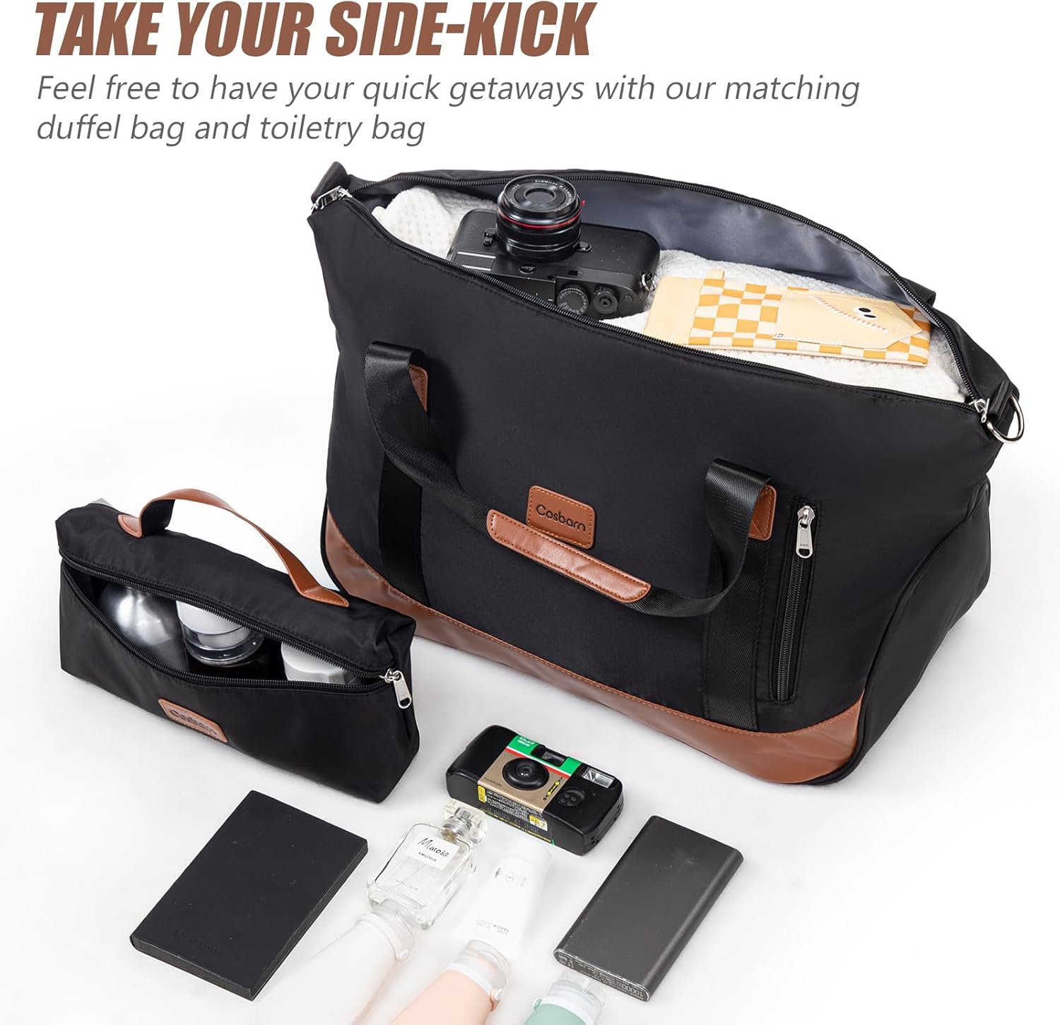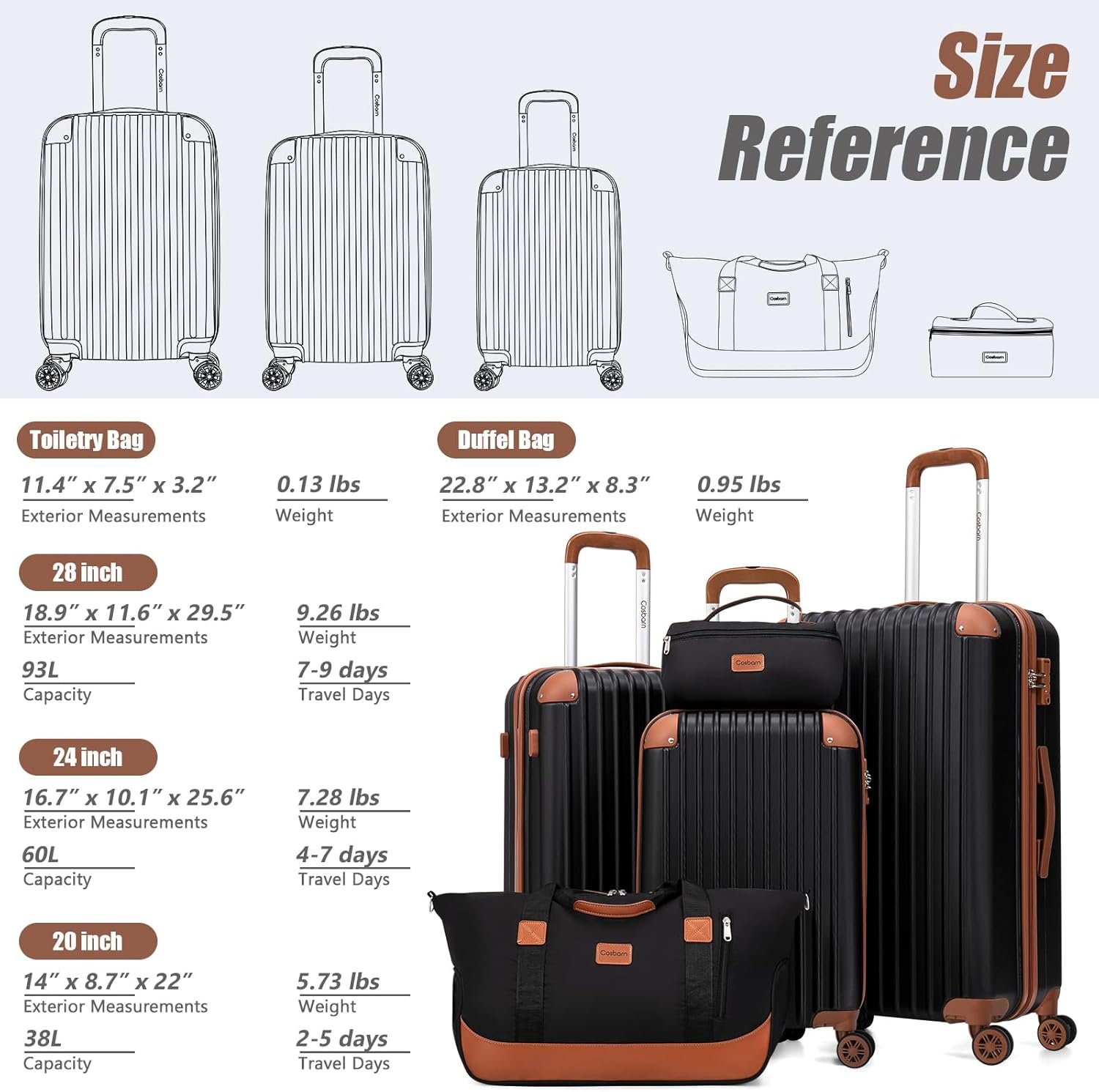【5 Piece Luggage Set】Luggage sets include a 28-inch large suitcase, 24-inch medium checked luggage, 20-inch carry on luggage, an extended duffel bag, and a toiletry bag. Both the duffel bag and toiletry bag are made from mild, water-resistant polyester fabric. The duffel bag features a back sleeve so you can conveniently attach it to the retractable luggage handle. It is equipped with multiple functional pockets to meet different travel needs.