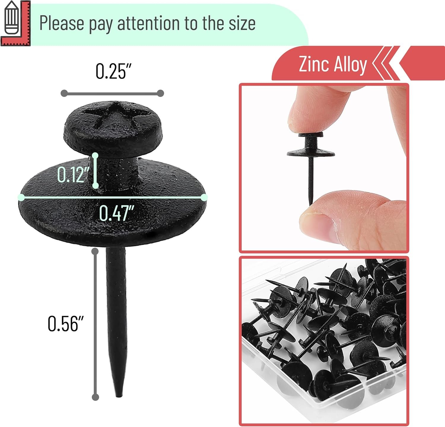 This package includes 50 double-headed picture hanging nails, plus a convenient storage box for easy organization and storage when not in use.