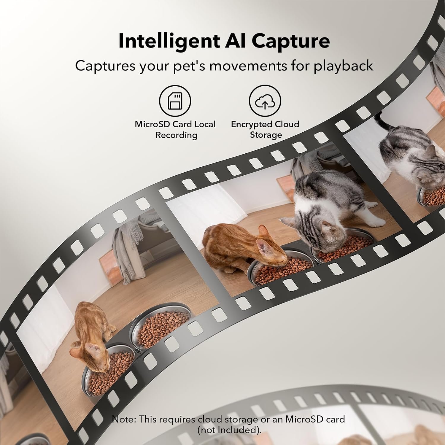 Secure Cloud Storage & AI Recognition: Optional cloud service safely stores camera footage. AI-powered pet detection makes it easy to find and download specific clips.