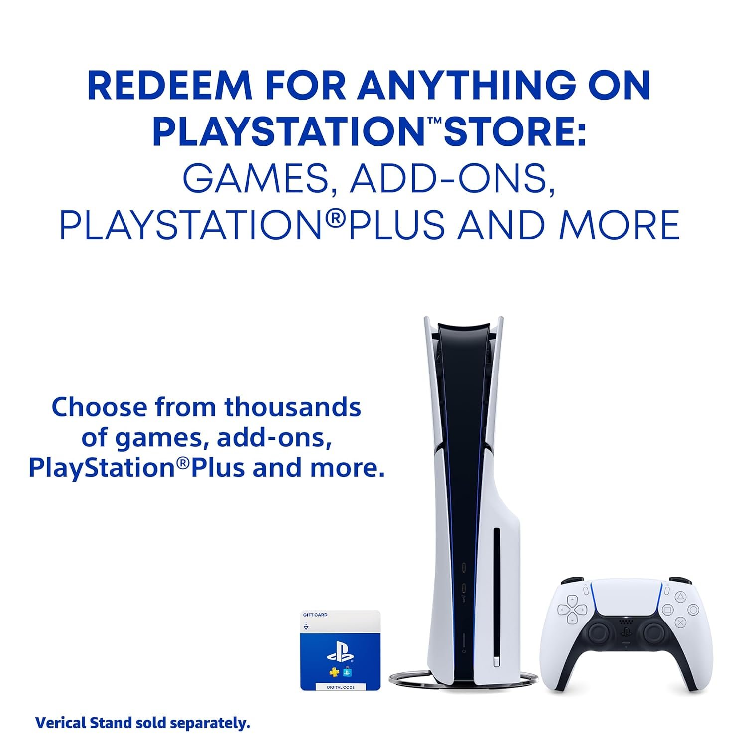 Easily add funds to your account for PlayStation Network (PSN) to use towards anything from PlayStation Store’s (PS Store) huge library of content, including: • PlayStation Plus (PS Plus) subscription* with online multiplayer access, games every month, exclusive discounts and more • Games • Virtual currency and add-ons • And more HOW TO REDEEM: 1. Sign into PSN or create an account at playstation.com. 2. Go to ‘Redeem Code’ on PS Store and enter the 12-digit voucher code (Code). 3. To purchase PS Plus using the funds from this Code, select the subscription plan of your choice, and complete the purchase. Redeemable only by users aged 18 or older holding an adult account for PSN registered in the U.S. PSN wallet funds can be used by the redeeming account holder (and their child Family Member accounts) to pay for items in the PS Store available to U.S. account holders. Use of Code is subject to these terms, and Terms of Service and User Agreement and applicable Privacy Policy at playstation.com/legal/PSNTerms. Terms of this Code may change without notice. Void where prohibited or restricted by law. If you do not accept these terms, do not purchase. Subject to applicable local laws, Code is not redeemable for cash, cannot be returned for cash or credit, and may not be resold, exchanged, or used for any other purpose. Code will not be replaced if lost, destroyed, stolen, or otherwise used without your permission. Valid for one time use only. Compatible system and internet connection are required.