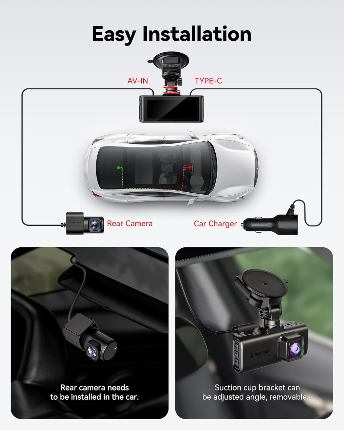 [Easy installation & 18 Months Guarantee] Mount the dash cam on the windshield with the suction cup, hide wiring with the included pry tool, and attach the rear camera. Additionally, REDTIGER provides 18 months guarantee and 24/7 customer support. Our aftersales team is always ready to assist you with any inquiries or concerns. Drive with peace of mind, knowing that we’ve got you covered.