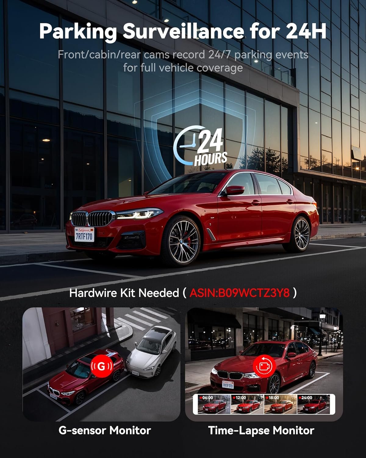 [Triple Parking Monitor for Max Protection] REDTIGER car security camera features two parking modes to protect your vehicle after using the extra hardwire kit. Time lapse and collision detection modes with G-sensor capture incidents while parked, front, rear, and interior cameras provide comprehensive coverage. Safeguard your vehicle all day.