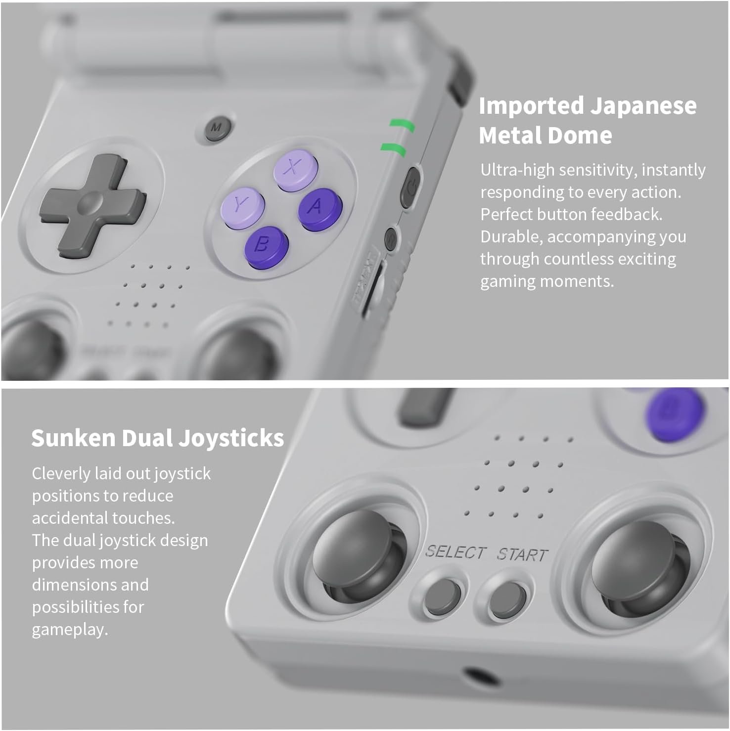 Cleverly laid out joystick positions to reduce accidental touches. The dual joystick design provides more dimensions and possibilities for gameplay.