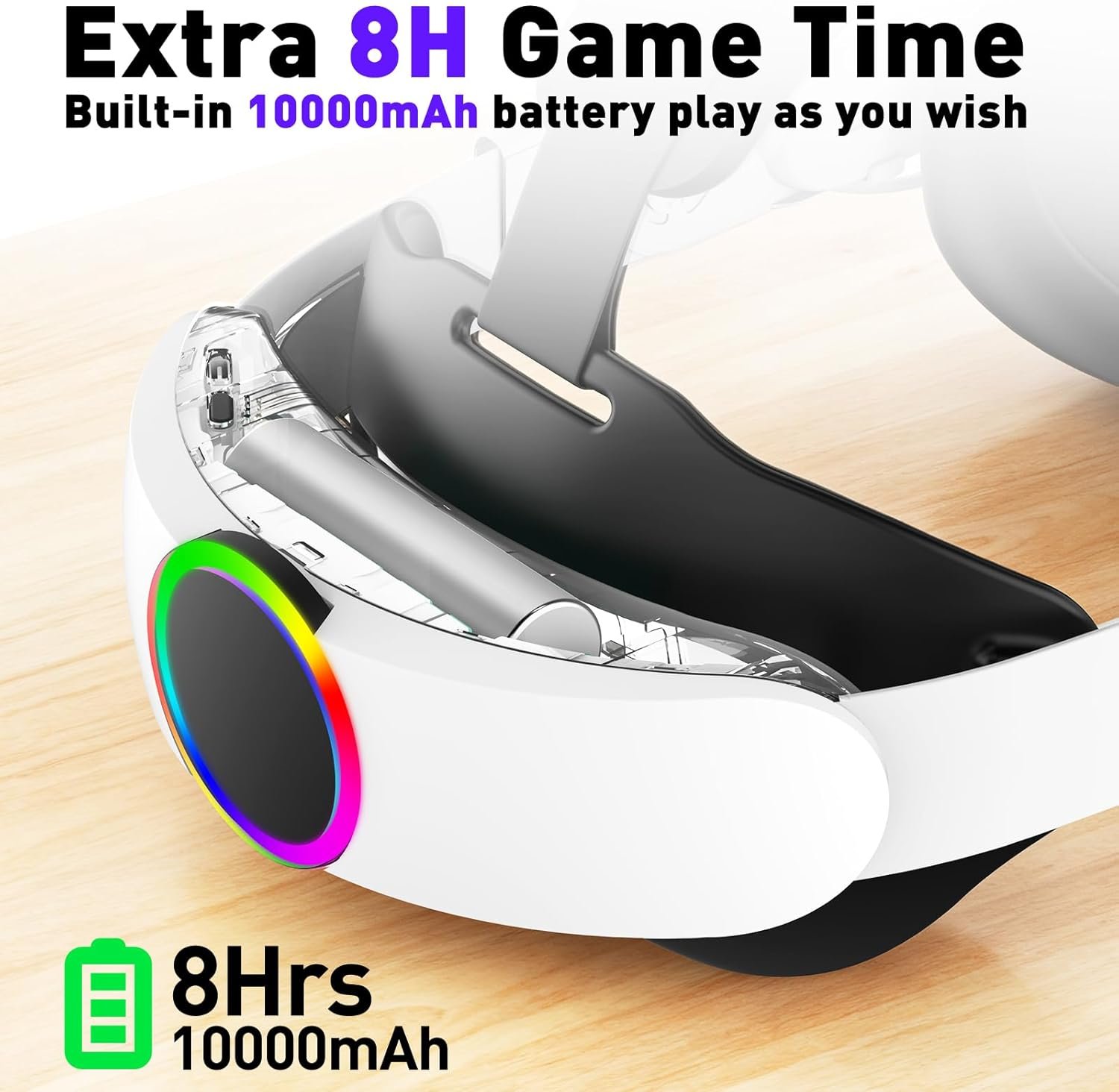 【Extended Playtime】With a high-capacity 10,000mAh battery, this head strap accessory for Meta Quest 2 / Oculus Quest 2 extends your playtime by up to 8 hours. Enjoy uninterrupted gaming and immersive VR experiences without worrying about running out of battery.