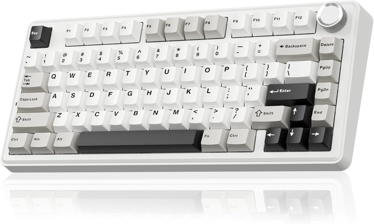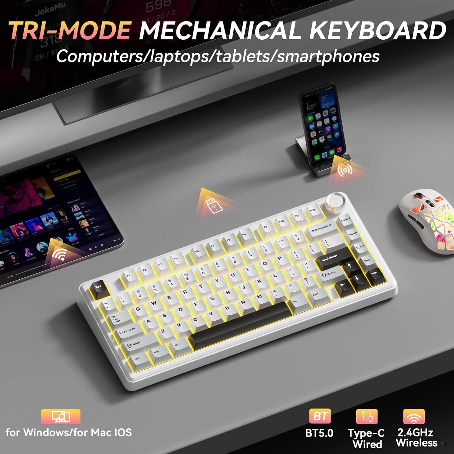 SOLAKAKA A75 75% Wireless Mechanical Keyboard, Hot Swappable Gaming Keyboard with Multifunction Knob & RGB, Gasket Mounted Creamy Keyboard, PBT Keycaps, Compact Layout for Win/Mac/PC