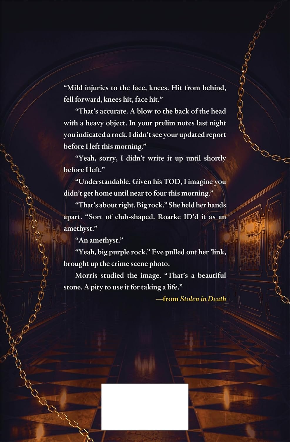A blow to the head with a block of amethyst has left multibillionaire Nathan Barrister dead―while nearby, a vault, its door ajar, sits filled with priceless paintings, jewelry, and other treasures. Lieutenant Eve Dallas’s husband, Roarke―who misspent his youth in Ireland as a scrappy thief―recognizes at least two stolen pieces among the hoard. The crime scene suggests a burglar caught in the act. But only one item seems to be missing.