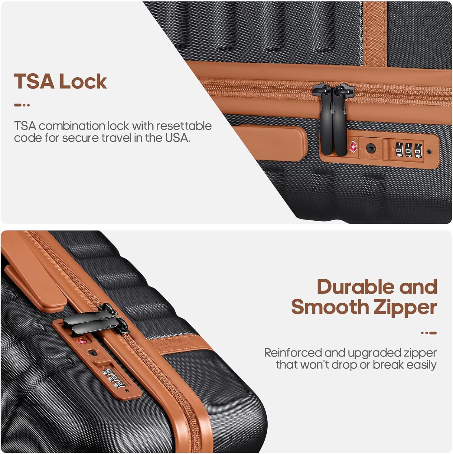 TSA Lock and Alloy Zipper :The Built-in TSA lock does not have to be forced open and damaged during inspection. It ensures the safety of your valuables and facilitates your passage through security. The alloy zippers allow travelers to effortlessly open and close their luggage, which adds a safety and convenience to the entire trip.