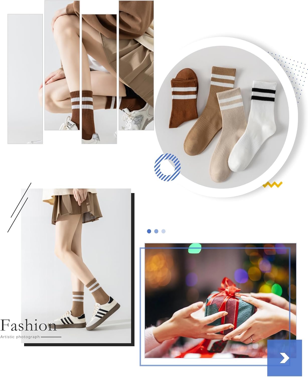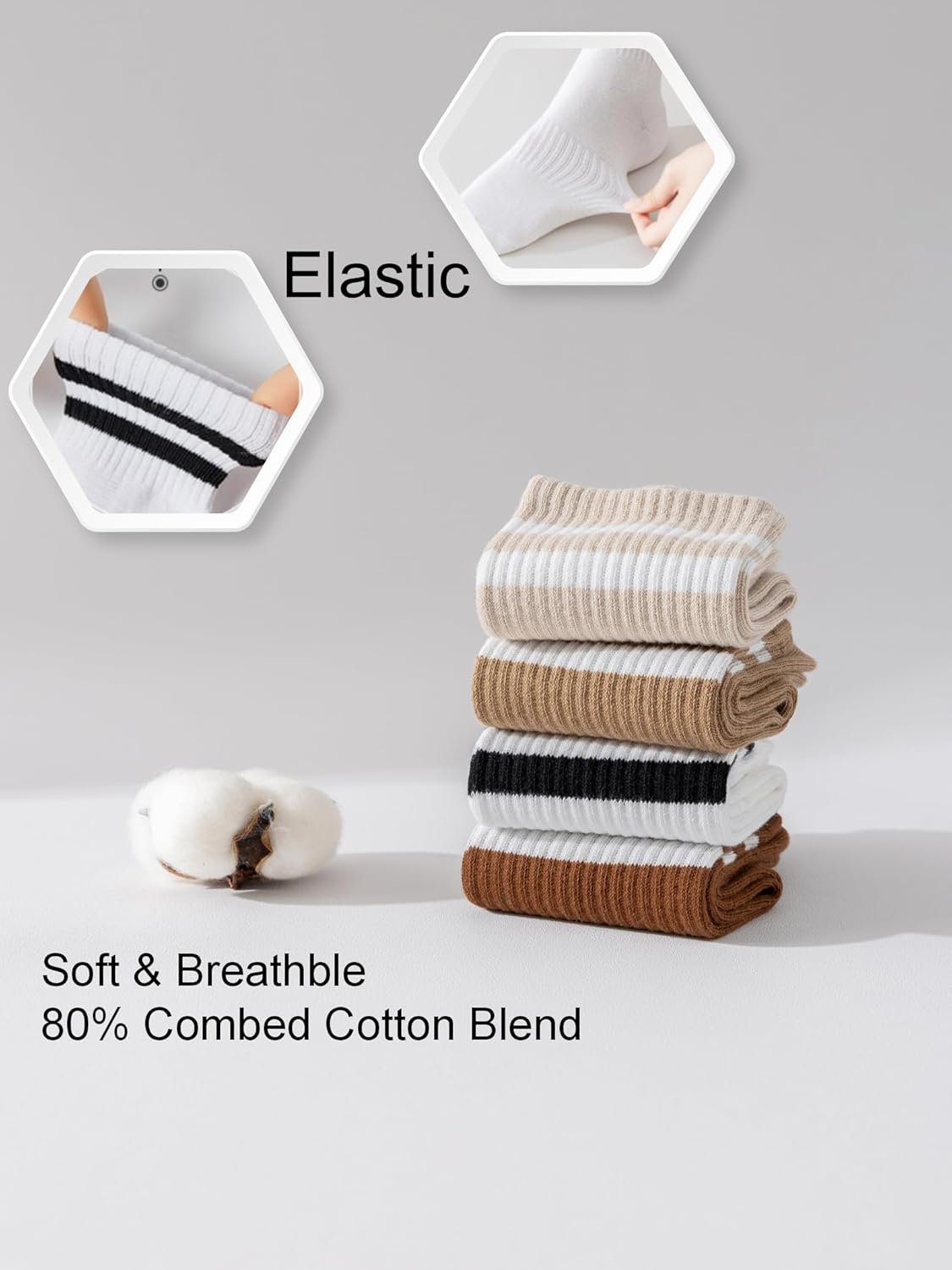YUWELL Womens Striped Crew Socks, Cotton Cozy Casual Socks for Women 4 Pairs, Size 5-10