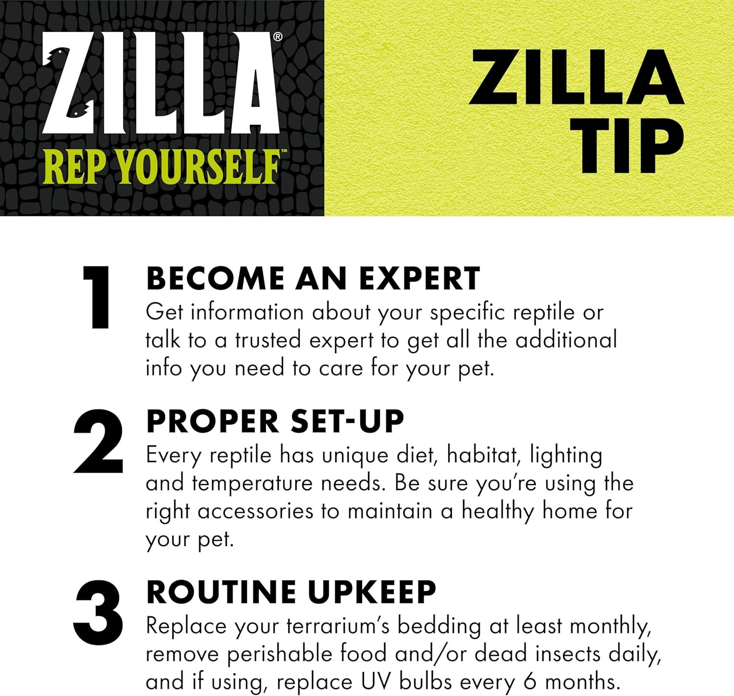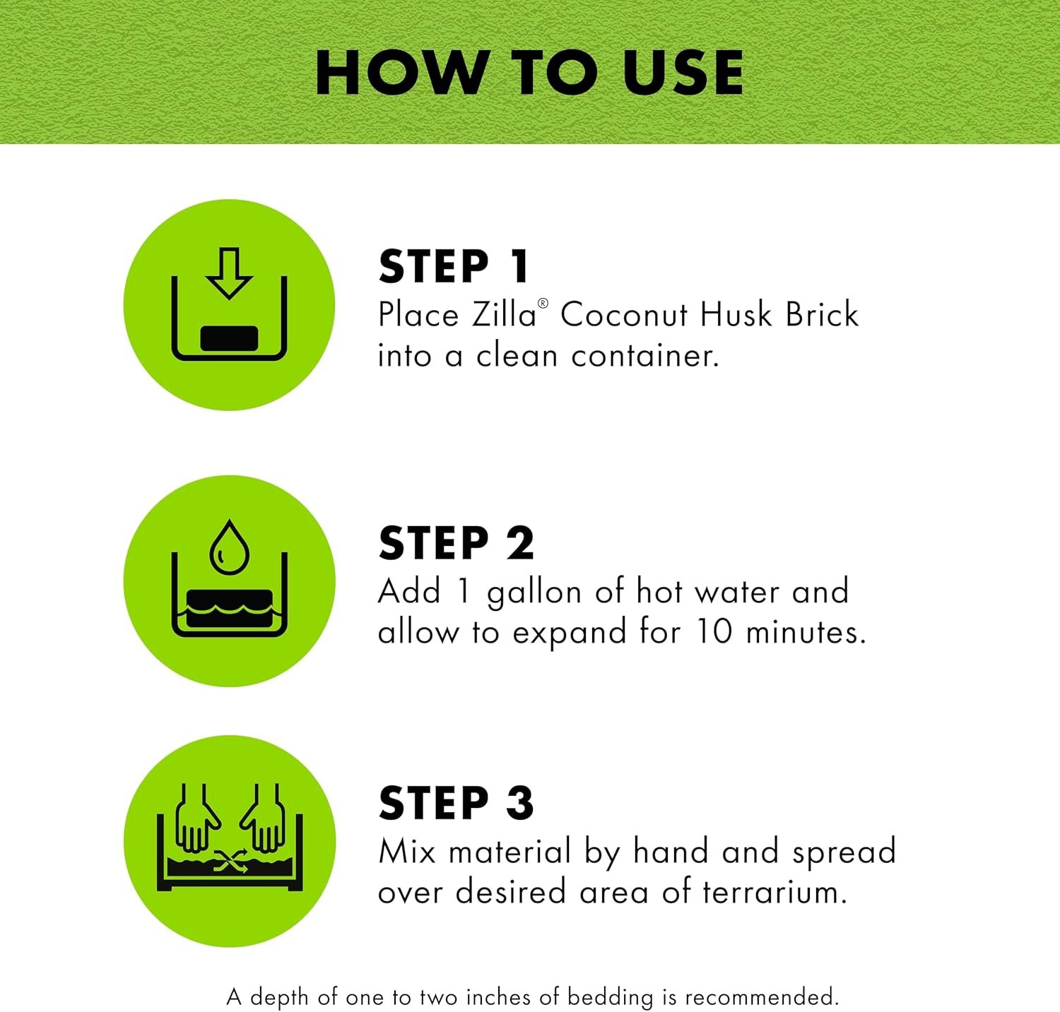 Whether you’re looking for a sustainable, organic option for your terrarium or trying to keep humidity levels high, Zilla Coconut Husk Brick can be your ideal solution. Packaged in compressed bricks, Zilla Coconut Husk Brick naturally expands up to 5 times its packaged size when hot water is added. Its highly absorptive quality makes it ideal for maintaining the humidity level in tropical habitats. The soft texture is a perfect medium for egg laying and encourages natural burrowing behavior in reptiles. This product is made of 100% organic coconut fiber, providing a natural substrate for your reptile and an environmentally sustainable product for you. It is ideal for tropical habitats and reptiles such as chameleons, rainforest geckos, frogs and toads, but is also conducive to reptile egg laying and incubation. With one brick, you can cover the bottom of a 55-gallon enclosure. Celebrate your pet and Rep Yourself, with Zilla.
